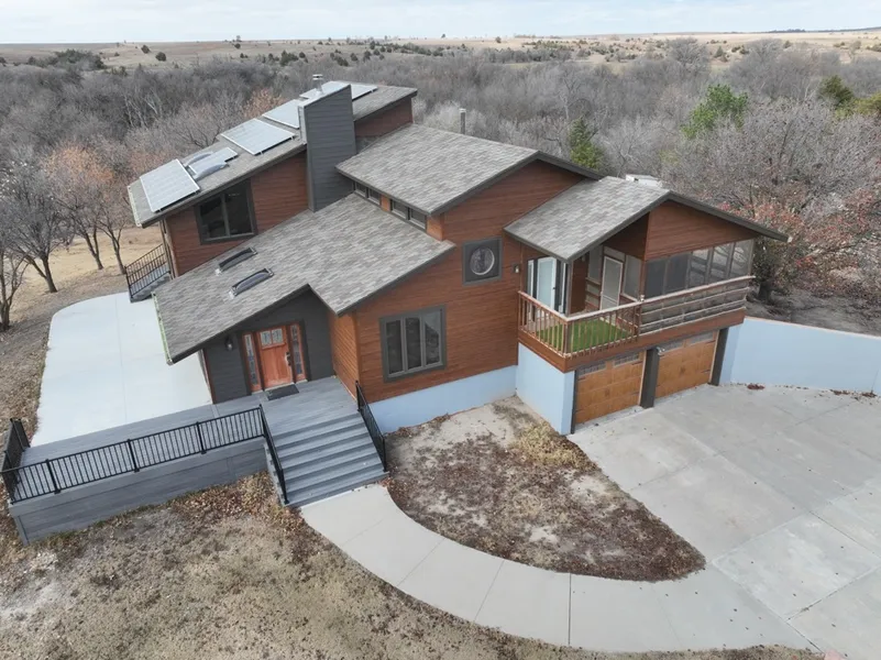 Welcome this hidden gem of a spacious country home nestled on 21.75 acres of picturesque acreage, surrounded by lush timber cover and abundant hunting habitat. This stunning 4-bedroom, 3-bathroom home is a true sanctuary, boasting over 3,400 square feet of living space, with a unique 1 story design that exudes charm and character.Step inside to find a primary suite that exudes luxury, complete with a modern primary bath featuring a tile shower/tub, double vanity, and a private back deck offering breathtaking views of the sprawling property. Additional spacious bedrooms provide ample room for guests and family members.The main living area is adorned with a wood-burning stove set against a beautiful stone accent wall, while the kitchen features stainless steel appliances, wood cabinetry, and access to a front enclosed porch for enjoying your morning coffee.Enjoy the convenience of a double car garage in the basement, alongside a full basement bathroom and laundry room.The extensive multi-level deck wraps around the house, offering the perfect spot for outdoor relaxation and entertainment. It has incredible views from the private deck space, accessed from the primary suite.Outside, the property boasts incredible private space for enjoying the great outdoors year-round. A large yard provides ample space for recreational and sports activities with the family. A beautifully landscaped exterior, kennel space for your hunting dogs, wood-style garage doors and stunning siding on the home, and the small storage building provide additional luxuries for your family. Solar panels power the home year-round, while a dog kennel area, storage shed, and city water supply add to the convenience and functionality of this unique property.Located on the NW edge of Stockton, KS, this secluded homesite offers the perfect blend of privacy and accessibility, with a -mile private driveway ensuring peace and quiet while being just moments away from a great small Kansas community and HWY 183.Don't miss this one-of-a-kind opportunity to own a slice of personal paradise. Schedule a viewing today and make this stunning country retreat your own!Property Overview Bedrooms/Bathrooms: 4 bedrooms, 3 full bathrooms Size: 3,414 square feet of living area, 1 story finished home built in 1987. 2,548 sq ft main floor Garage: Double car, basement garage Acreage: 21.75 acres of hidden acreage with excellent timber cover and hunting habitat. Beautiful AreaHome Features Primary Suite: Spacious Primary suite in the upper level with beautiful modern primary bath with tile shower/tub and double vanity. Extra room within primary suite can be converted to large closet space or utilized for storage or baby room within the primary suite. Access to private back deck overlooking the stunning acreage within the property boundaries Additional Bedrooms: Three additional bedrooms provide ample space for kid's rooms or for housing guests and other family members Main Bathroom: The main bath features stylish vinyl wood-style flooring, a large bathtub, a walk-in shower, and stunning white double vanity Main Living Room: The main floor living room features attractive carpet flooring, a wood-burning stove complimented by a beautiful large stone wall background, and natural light flowing in from the upper-level windows. The kitchen bar area overlooks the living room, providing an excellent setup for entertaining family and guests Kitchen: Large, spacious kitchen features stainless steel appliances and sink, beautiful wood cabinetry accented by attractive tile backsplash wall, and striking wood style vinyl flooring. Access to the front enclosed porch area from the kitchen as well. Basement: Full basement bathroom and laundry area. Double-car garage access from the basementHome Exterior Incredible first impression when pulling up to the home! Beautiful wood-style garage doors, impressive retaining walls, and opportunities for amazing landscaping improvements Unbelievable deck around the house with beautiful railing and plentiful space for enjoying the outdoor surroundings New siding on the home. Replaced in 2024 Stunning wooden front door with beautiful glass accents Solar panels on the south half of the roof power the home year-round Roof was completely replaced in 2022Buildings & Utilities Dog Kennel Area with chain link fence Prefabricated 320 sq ft storage shed with wood style siding properly complimenting the home Large yard area with several beautiful trees planted throughout City water supplying the home and farmstead Septic System Solar Panel units power the home Central A/CWildlife and Habitat Turkeys, whitetail deer, and quail are prevalent on the property and surrounding area Excellent cedar and hardwood tree cover throughout the entire propertyLocation Conveniently located on the NW edge of city limits of Stockton, KS Home is located at the end of a mile private driveway Driveway located on 400 feet from HWY 183. Secluded homesite with excellent access