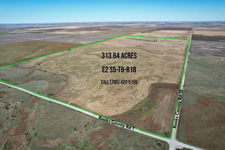 313± Acres | E2 S5-T9-R18 | Take advantage of this exceptional opportunity to acquire 313± acres of quality farmland. Located NW of Plainville KS, just off County T Road, 2.5 miles west of HWY 183 and 4 miles north of HWY 18 - Rooks County. The property offers excellent county road access and features a potential building site on the south end. This tract is selling with surface rights only and will be a great addition to any existing farming operation. If you are just looking to invest in some land, there are several tenants available to cash rent the ground. This piece also offers great upland bird hunting potential with grass draws providing areas of cover. Call Trevyn Wolf at 785-422-5155 for more information!!!