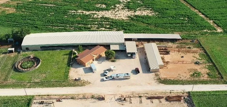 The 275x90 indoor arena is equipped with 3 rollup doors on the north side and mesh cloth on the south wall for airflow, a return alley, roping boxes and electricity. A nine stall barn is attached to the arena with seven stalls having runs. This barn has a large tack room, a separate area for hay storage and a breezeway the length of the barn. All stalls and pens are equipped with automatic waters. The second barn has seven stalls with runs that also open up into 3 different larger pens. This barn also has its own hay storage and breezeway for ease of feeding.