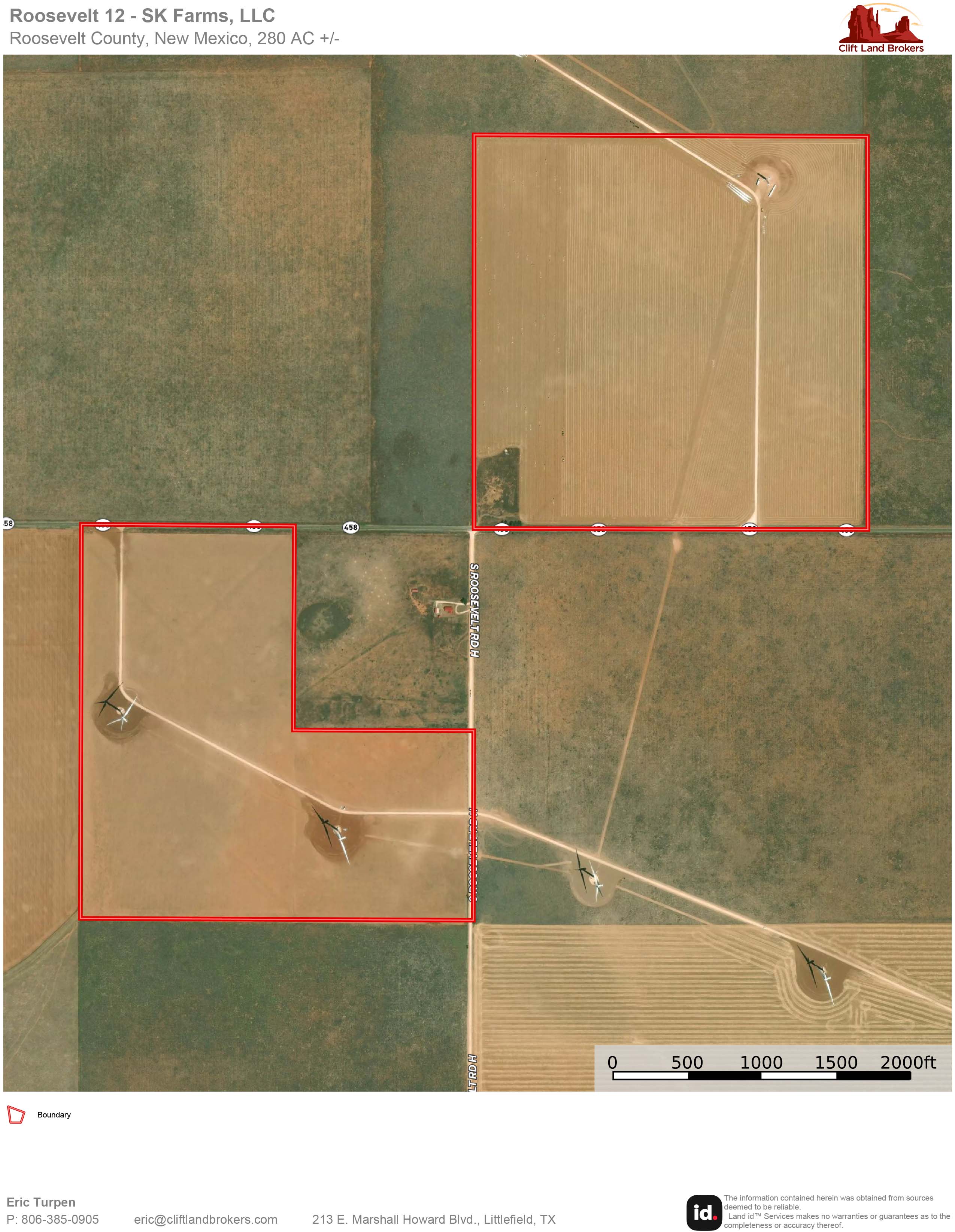 These are two nice tracts of dryland farms in Eastern New Mexico. There is a nice pipe entry gate on each tract with some temporary fence on the south tract. There are no other improvements on the property. There are three wind turbines on the farms, however the seller does not own any wind interest. The farms are cashed leased to a farmer in the area until June 2028 for $25/acre ($7,000/year). There is paved frontage on both tracts.
