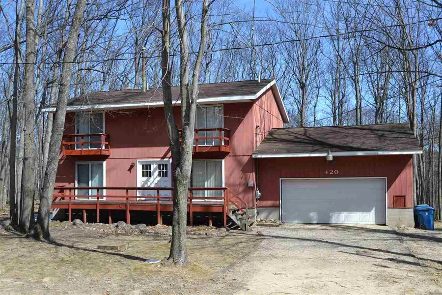 Plenty to offer, this home has over 2600 living square, attached garage plus 40 x 64 detached garage, includes 8 lots situated near Higgins Lake yet away from the traffic. Home needs some updates and kitchen area finishes. With your finishing touches on this place you could enjoy the spacious living room that overlooks the beautiful wooded lot behind.