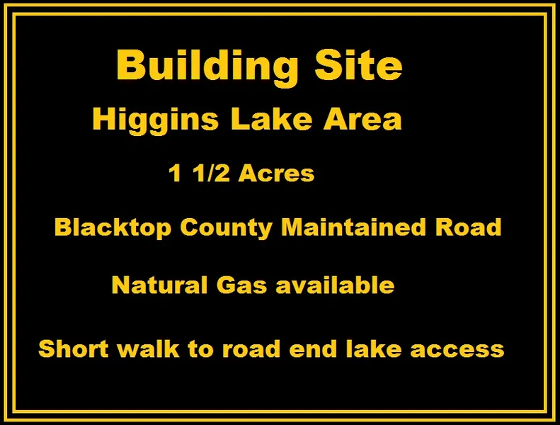 Extra large wooded lot approximately 1000' from Higgins Lake road end access, this lot has 125 feet road frontage and is approximately 600' deep. Lot situated on county maintained paved road with electric and natural gas available at the street.
