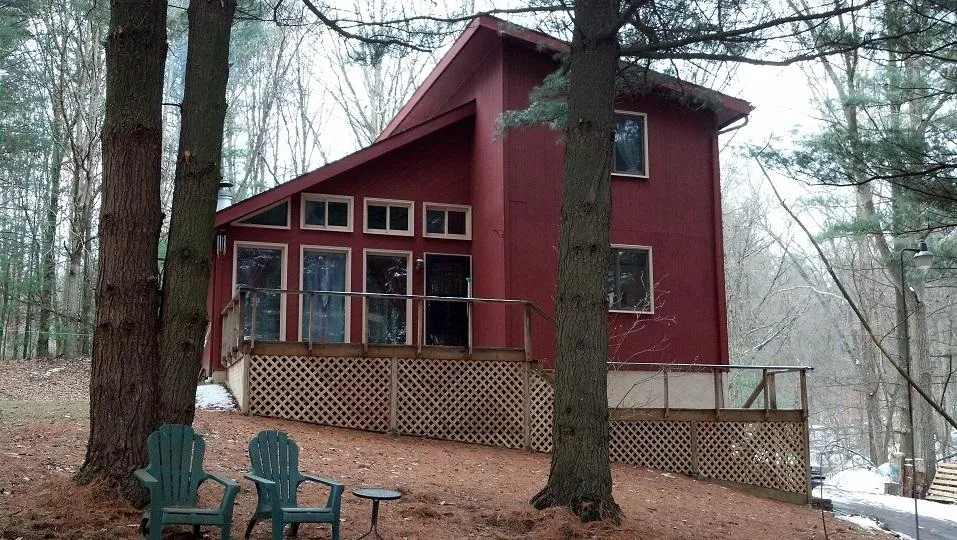 Colorado style chalet bordering the 16,000 acre Tar Hollow State Park offering small and big game hunting, fishing and hiking with 26 miles of bridle trails. This is the perfect, hard to find recreational getaway which could also be used as a full time residence. Offering 3 stories including walkout basement, 2/3 bedrooms, 1.5 baths, full kitchen, ample storage, fireplace in living room as well as a wood burning stove in the basement. Outside includes large elevated decks for entertaining, storage building, county water, onsite septic system and a private setting on 1.5 acres. The property borders the state park on the south side line. A fifteen acre tract directly behind the cabin can possibly be leased for hunting rights from the neighboring owner. Real estate taxes are approximately $922 per year. Showings by appointment only to qualified buyers.