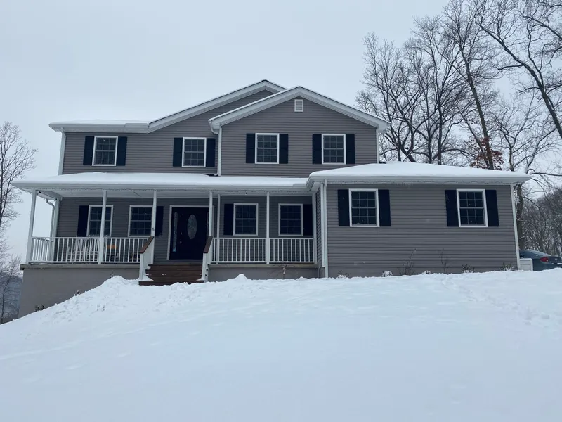 Enjoy the spectacular view of the beautiful hills of Southern Ohio from the back deck right outside the kitchen doors or on the balcony off the master bedroom of this home! This 2 story features 4 bedrooms, 2.5 baths, full poured basement, first floor bedroom, fireplace for our chilly winter nights and open concept kitchen and living area. Kitchen boasts a center island, built in oven, range and microwave, floor to ceiling cabinets and hand scraped hardwood floors. Poured walls in the basement along with a wood furnace.