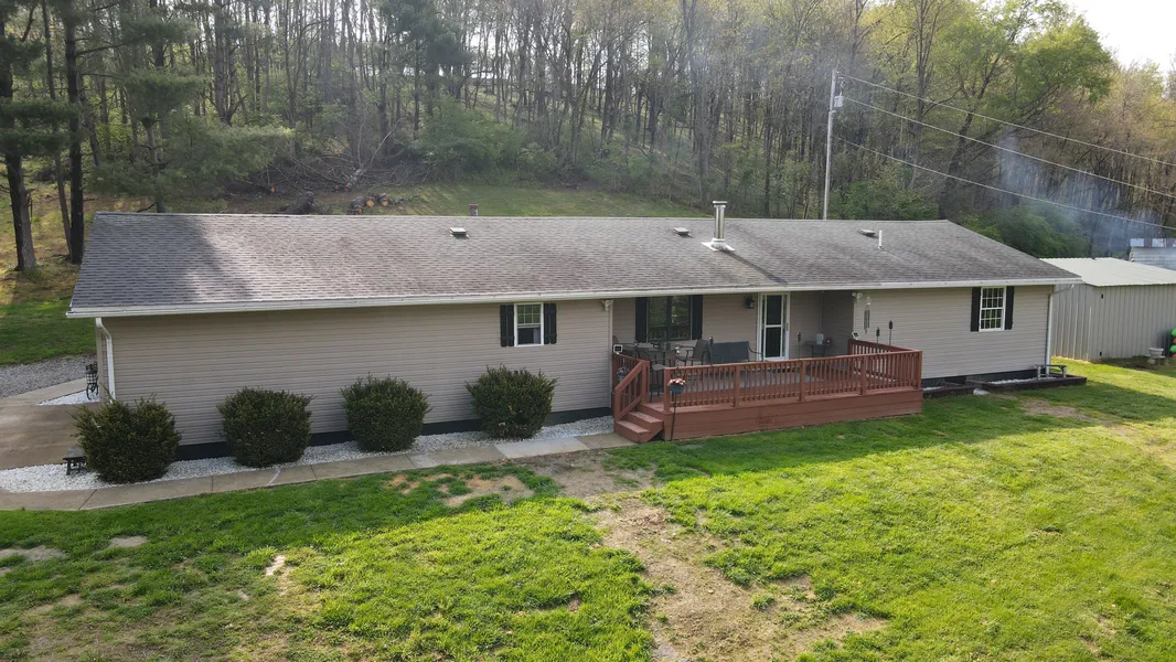 Looking for a home in the county with privacy, some land & gorgeous views? If so, this might be the home you've been looking for! Situated on 6.41 acres up on a hill, you're surrounded with mature trees, wildlife & tons of privacy. The house is a 3 bed/2 bath ranch that has been tastefully remodeled. The kitchen was remodeled this past fall & offers granite countertops, laminate plank flooring & stainless appliances. Other recent updates include new flooring in bathrooms & laundry, new light fixtures & fans, new solid wood 6 panel doors, French doors & freshly stained woodwork throughout. The 2 car attached garage is insulated & freshly painted. For storage, there is a 12' x 20' shed as well as a 28' x 30' pole barn that is insulated & has wood burning heat, electric & water. The deer blind in the woods will stay for the new owner as well as the newer hot tub and pergola. Other great features include security cameras, alarm system & fully gated decks off both the front and rear.