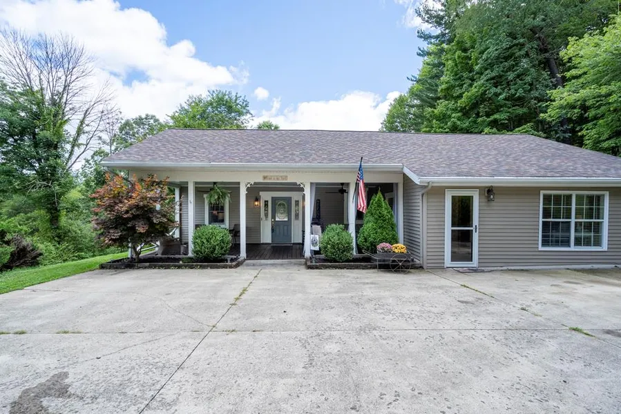 Oh my GOSH, what a beautiful home this is! From the moment you step onto the front porch you will want to sit down & never leave. But open the front door into the living room with a gas fireplace, built in shelves & beautiful wood floors. Then walk up onto the open concept family room & kitchen area where there are 2 outdoor spaces. The 1st is a brick patio with plenty of entertaining space & the sellers are leaving the pergola. The 2nd space is thru the sliding doors onto a concrete patio that overlooks the wooded back of this property. The family room had been used as a formal dining room. It offers a skylight, wood floors & a fireplace. The kitchen has a breakfast bar as well as enough room for a dining table. It even has a trash compactor!!! The primary bedroom is its own wing & is a retreat for sure especially when you slide the door open onto your private covered deck with ceiling fans & views that won't disappoint. The attached bath has separate bath & shower & a large closet.
