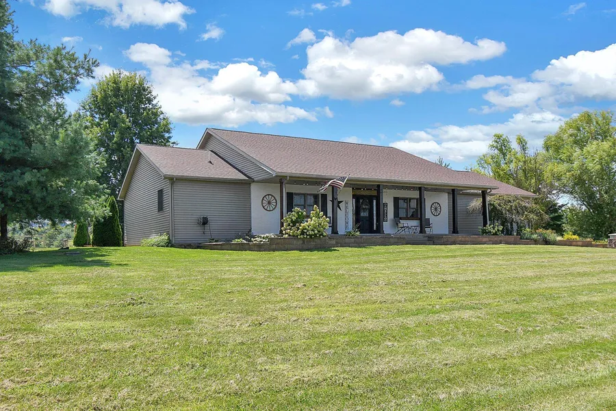 This is the one! Rare opportunity to own this beautiful, updated Ranch home with custom wrought iron entrance gates that sits on a little over 5 acres. Stunning grand foyer. This home boast 12' ceilings, large and open floor plan, a grand stone fireplace, luxurious private owner's suite complete with private bath, walk in closet and sitting area. Enjoy the new screened in patio while you gaze at your crystal clear 14x28 inground pool that is perfect for entertaining or just simply relaxing, 30x64 pole barn with 20x40 and 14x24 workshops,4 horse stalls and 2 gorgeous fenced in fields. This is the DREAM!