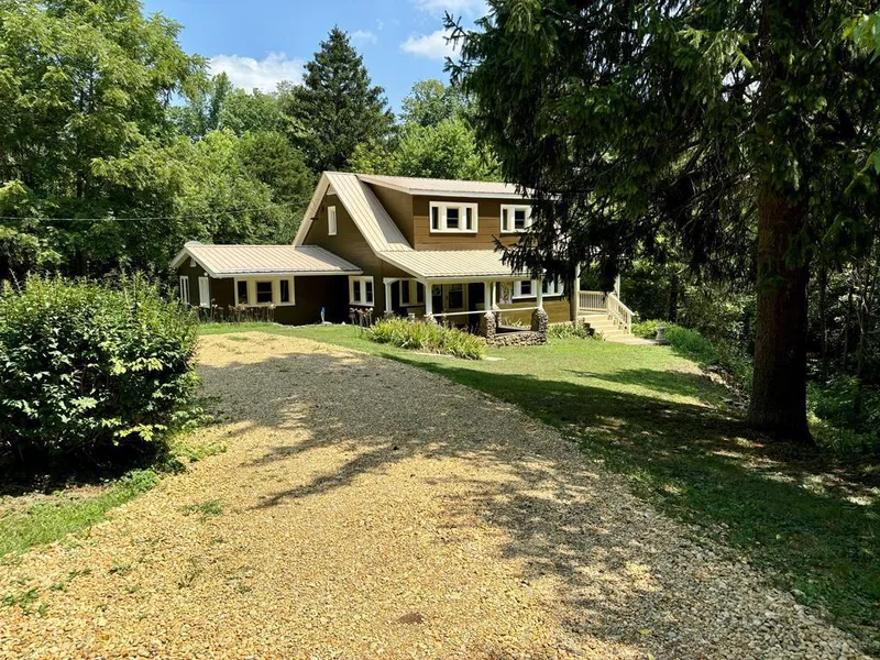 This charming 1.5 story home, set on 15 scenic acres, offers a unique chance to own a piece of Ohio's natural wonder, including Reif's Cave, one of the state's longest caves. The home features 3 bedrooms and 1 bath across 1,340 sq ft of living space, with a newly painted exterior, it boasts a sturdy metal roof, a newer furnace and updated windows, ensuring comfort and energy efficiency. A private well with a new pump and pipe adds convenience, while the property includes a detached garage and a large outbuilding/shop for all your needs. Relax on the two covered porches, soaking in the beautiful scenery and the peaceful, private location. The property is a haven for nature lovers, with abundant wildlife, numerous riding trails and lush forestry, all in a secluded and serene setting. 2 car detached garage and a 48X22 3 bay block building too. A Hunters dream home! Call Today to view!