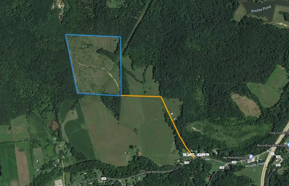 50 acres in Ross County. Access to property is via an easement with entrance GPS being 39.2473, -82.9979. This land is in a very private location and will make a great recreational get away.