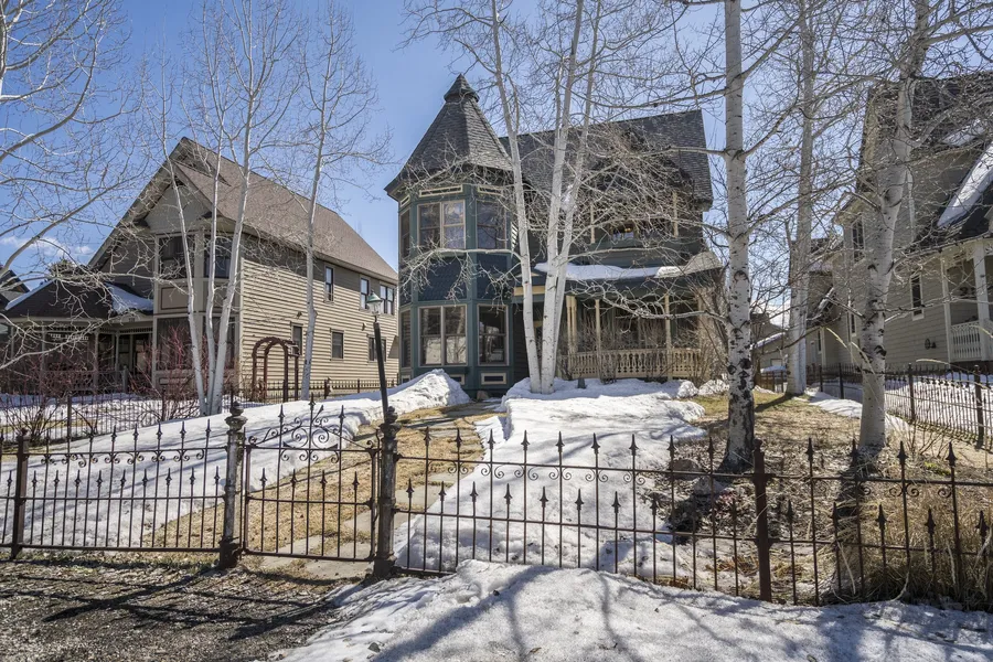 At 320 9th Street, youll find a Victorian-style home in the center of downtown Steamboat Springs just 2 blocks from Lincoln Avenue. Walk through the antique iron gate across the stone path to the front porch and youll find a home unlike any other on the market. Built in 1997, the owners further enhanced the interior with the addition of crown molding, framed archways, wainscotting in the dining room and transom windows with leaded glass, wood floors into the downstairs office, a window seat in the upstairs study, and custom bookcases in two rooms. Steamboats own Chula Beauregard was commissioned to paint the wall mural of the English countryside on one wall in the dining room. With 2,856 square feet, this is a perfectly spacious home with four bedrooms, a study/den, four baths and an attached 2-car garage. Among the many special spaces in this unique home are a main floor office (or bedr...