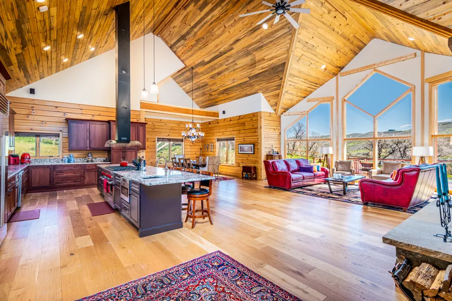 Discover the luxurious custom estate at Silver Moose Ranch, nestled in the prestigious Deerwood Ranches. Located less than 15 minutes south of Steamboat Springs, this magnificent property spans 35 acres & offers privacy, panoramic views, & exceptional indoor & outdoor living spaces, perfect for entertaining. The main/entry level is on the second floor & features a grand living room with high vaulted ceilings, 24+’ stone fireplace, exquisite wood floors, & floor-to-ceiling windows that invites the natural beauty into the home. At the heart of the home is a central kitchen, equipped with granite countertops, 48” Sub Zero refrigerator, 8-burner Wolf stove with two oven compartments, Bosch dishwasher, under counter microwave, island with prep sink & breakfast bar, & an open layout that seamlessly connects to the living & dining rooms. The expansive primary suite, also on the main level, has ...