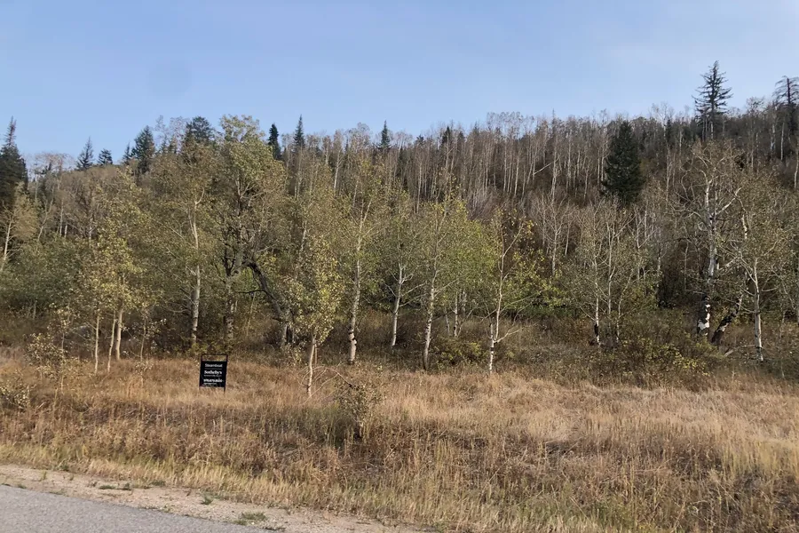 The lot is approximately 60% dense aspen forest to the north and 40% grassy meadow on the south where the home will be located. It features a small pond on the south corner and Little Fish Creek winds through the aspens at the north and leaves the property at the meadow to the southwest.