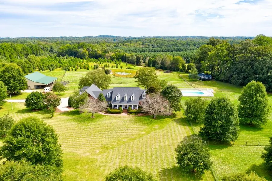 Serene 10-acre farm w/numerous upgrades, near all amenities. Obvious special touches, refinished hardwood floors, chair railing, crown molding, fluted columns, arched entrances & windows are just a few. Great room w/gas fireplace flanked by French doors. Large kitchen w/breakfast space; custom cabinets, breakfast counter, cooktop, large pantry, granite countertops w/tile backsplash, double wall ovens, microwave drawer & side-by-side refrigerator. Main floor master; large bath w/2 vanities, new garden tub, and glass shower. 2nd level has bonus room w/half bath, office, 3 bedrooms; one a suite w/private bath. Covered back porch, brick patio and pool. Large barn w/concrete floor, 2 automatic end garage doors & 6 side garage doors for flexibility. Storage room; climate-controlled tack room/office and walk-up hay loft. Eight 5ft no-climb fence paddocks; frost free spigots; run-in shelter w/po...