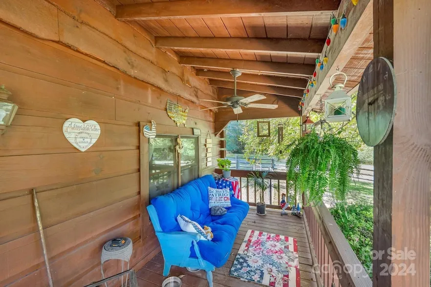 Tucked away on more than 6 acres, this distinctive log cabin offers a wealth of features for those who cherish privacy & tranquility. Designed w/comfort & functionality in mind, the interior showcases a spacious, open dining & living area, w/high beamed ceilings that add a touch of rustic elegance. The charming front porch is a nature lover's paradise; surrounded by an array of flowers, fruit, & trees, including dogwoods, white ash, fig, pecan, & black walnut. Beyond the main residence, the property is equipped w/a huge carport & storage building, providing ample space for vehicles & belongings. The antique building could be transformed into a workshop, studio, or additional storage. The barn is perfect for housing horses or other animals, making it ideal for those w/a passion for equestrian activities or small-scale farming. Located just minutes from I-85, shopping areas, & High Rock Lake, it offers both seclusion & accessibility. Don't miss the chance to make it your new home!