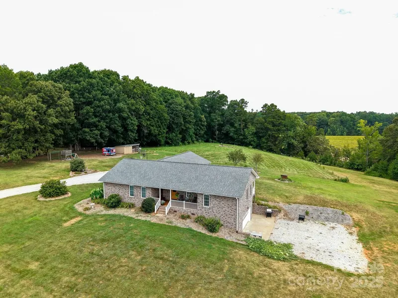 Escape to the countryside to this Charming Custom Brick Ranch with a full basement situated on a private 7 acres. Open floor plan w/ hardwood floors throughout; Kitchen offers grand eat-in island, granite counters, black ss appl, soft closed cabitnets; Gas log fp in the great room; Primary has double sinks and walk-in tile shower; secondary bedrooms have walk-in closets; the walk out basement is heated and cooled and partially finished and has full bath... perfect area for recreation and an additional family room. Oversized 2 car garage and a 1 oversized 1 car garage/workshop in the basement area. 1 stall barn w/feed room... Perfect for a mini farm. Fruit trees and creek at the back. Country Living at its best!