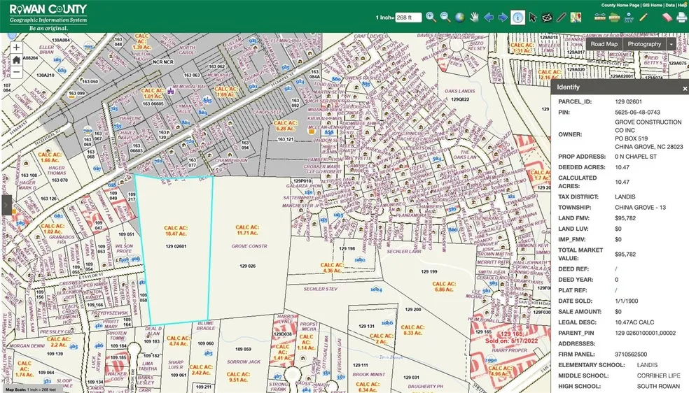 Approved through town of Landis along with parcel 129 026 for 86 town homes. This parcel is 10.47 Acres in Landis zoned Residential Main Street Transition (RMST), lightly wooded, decent topography, easy to walk and evaluate. Great location in burgeoning Landis, China Grove, & N Kannapolis Area. Great location for multi family housing, duplex, triplex, quad plex, townhouses, or single family residential. Very close to Hwy 29 & the Food Lion in Landis NC.