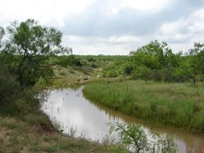 As you enter the property on the north west end you are pleasantly surprised with the continuous roll of the terrain, driving through creek beds and cover while constantly climbing. When you arrive at the top, you have a 40 acre cultivated field perfect for a food plot. This field has good cover surrounding it as well as a large tank near by. All of this combines for the perfect habitat for the wildlife. As you travel eastward you will find the roll of the terrain awesome and then you come upon a lake nestled at the base of a tall cedar hill. The cliffs and lake make for a breathtaking view. Traveling more east and north the terrain changes to platueas and creek beds with a few canyons as well. If it's blue quail you want to hunt just hang on because next to the 120 acre food plot is the nesting area of many covies. The grass, pear, and mesquite provide the ideal home for the quail. Then you have the turkey that move in from the river and an abundance of dove to round out the perfect hunting place. Don't forget the fishing pole either....great surface water makes for good fishing holes.