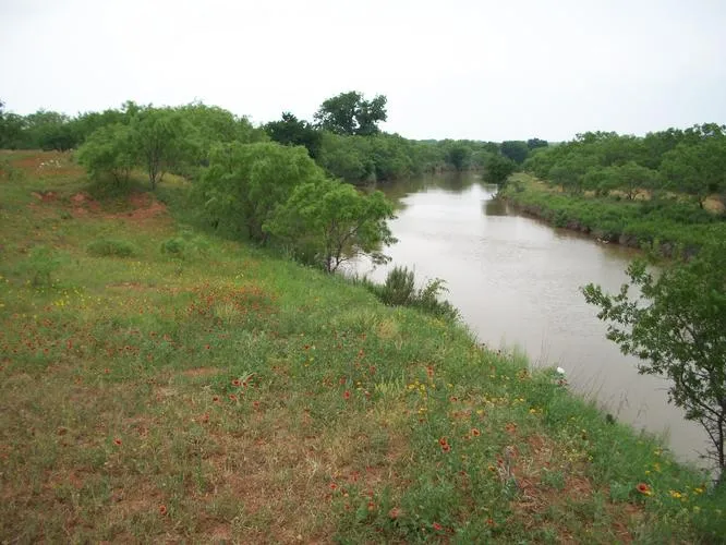 The ranch is generally gently rolling native pasture with a light to moderate cover of mesquite, a little cedar, and a few big pecan trees. The river provides the north boundary for just under six miles. It has both deep holes and shallows as well as high bank and low bank. County Road 287 is laned and bisects the ranch for several miles. The ranch shows excellent, long term range management and has a good turf of native grasses. Several old fields could be reclaimed and put back in cultivation. It is watered by the river, two seasonal creeks, and 18 good dirt tanks. No wells are present except for an old hand-dug well on the west side that is not in use. Several wells are in use within a mile of the ranch in every direction. In particular is a 300 GPM irrigation well about a mile off of the south fence.
