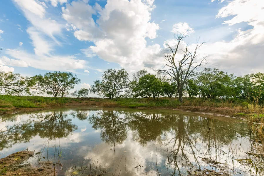 There are two water wells on the property. One is equipped with a submergible pump, and the other is cased well. There are three dirt tanks on the property.
