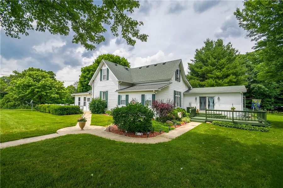 This is a wonderful property offering 5.1 acres and a well cared for 2,698 sq ft home! As you pull up to the asphalt drive you'll love how the property sits high above the county rd giving great views of the countryside! The home is spacious and tidy! There's a large living rm with fireplace which is open to the kitchen and dining nook. There are custom made cabinets & doors in the kitchen and butler's pantry! There's also a private family room which would also work as a 4th bedroom! The master bedroom is on the main floor and offers a large walk-in closet! Both the deck and patio offer cozy views of the property. There's a newer 32x40 pole barn, a detached garage, a small building for livestock and a 4 year old septic! There are an additional 25 tillable acres that can be purchased as well. (R-WES)