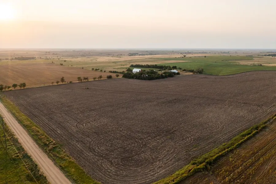 Nestled inside several mature shelter belts, you’ll find this quaint farmstead tucked away on 148 +/- acres in Rush County, Kansas. The land itself is comprised of 97 +/- acres of tillable farm ground, 92.10 acres of which are quality class II harney silt loam soils with the remainder being uly and wakeen silt loams. Currently being farmed on a crop share basis, means a new owner will receive a 1/3 portion of the milo crop currently in place. An additional 46 +/- acres of pasture provides an excellent spot to house livestock with water and corals located where the pasture meets the back of the barn.