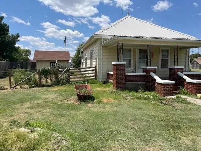 Cute little two bedroom one bath house with a metal roof and on corner lot. Would make a great rental!!!