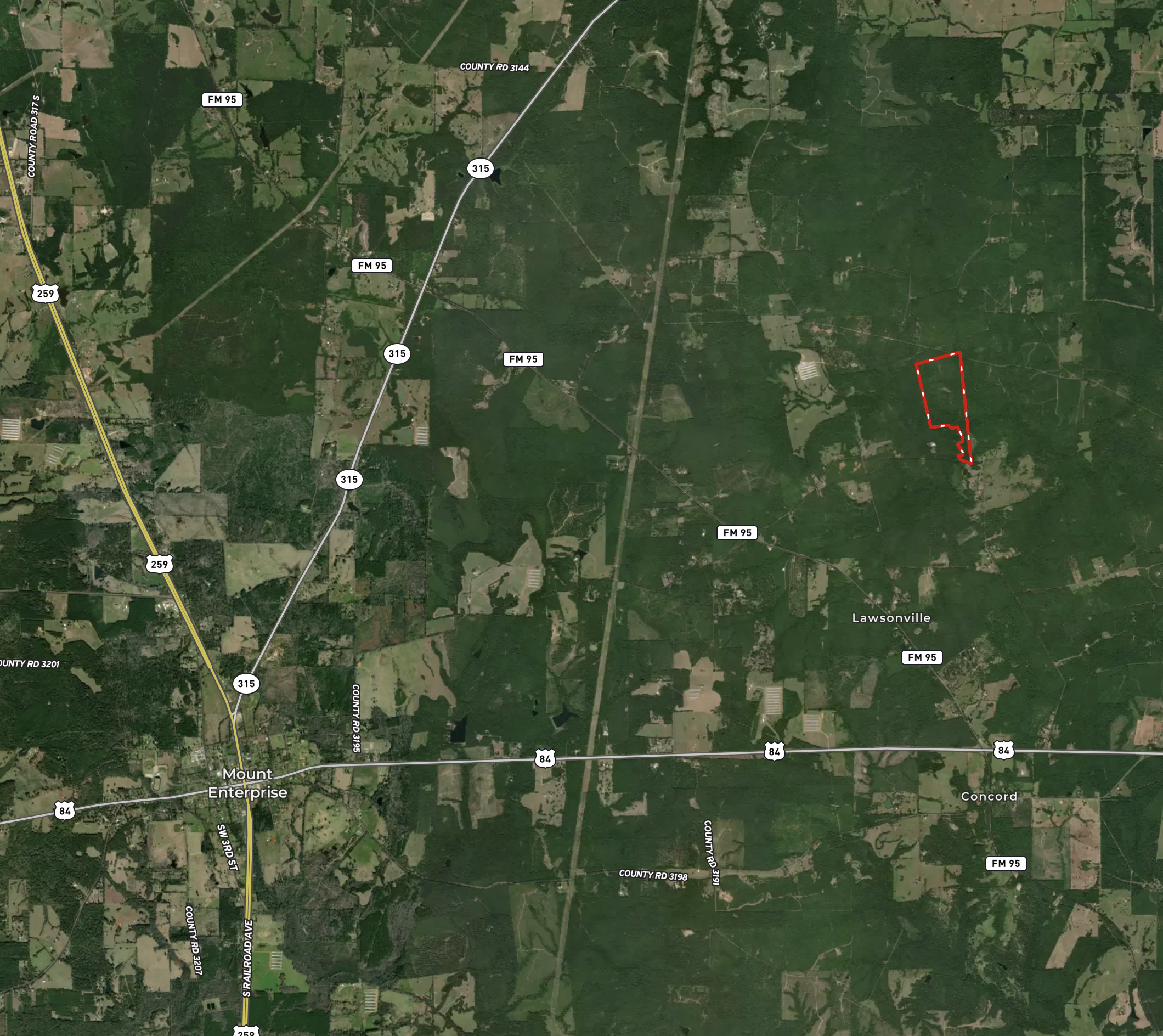 Two shipping containers on a 30x30 concrete pad, along with a small hunting cabin are located in the front of the property. Power and water are on site as well. This property is located only 11 miles from Mt. Enterprise and 28 miles from Henderson and has no restrictions!