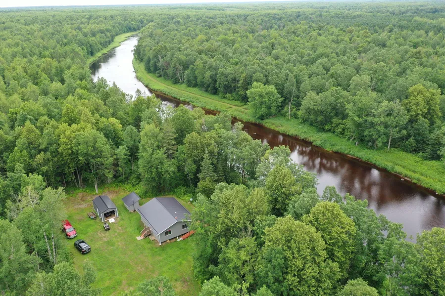 Research Parcel InformationOut of Jump River go East and then take a left on County Road MM, after 3 miles MM turns into M. Go another 3 miles. Take a right on River Road. Once you get to the gate, you’ll need to travel another .7 miles to the end of the road where the cabin is.