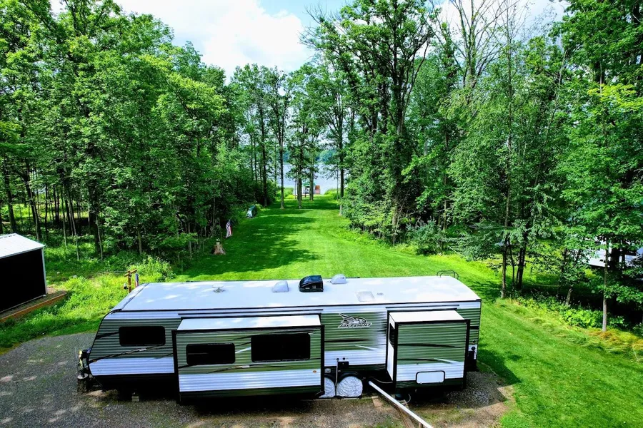 Welcome to the Island Chain of Lakes! Come enjoy today & stay for tomorrow with this attractive over-sized move-in ready read to use vacant lot! This well groomed 2 acre lot on McCann Lake offers the perfect set-up with a park like setting, 106ft of frontage, & more than enough room to do what you want! Build that year round Lake Home, Cabin, Shed, or enjoy the 2018 38ft Jayco Camper already in place with well, septic, electric installed. Camper, Riding Lawn Mower, Garden Sheds(2), Decks(2), Dock & Boat Lift included. McCann Lake is part of the 4-lake chain of lakes consisting of 1,250 acres of water to roam. The Island Chain of Lakes is a full recreational lake, one where you can boat all day and not see the same shoreline twice!