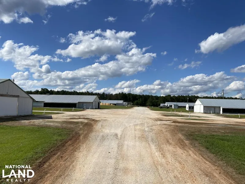 Sundowner Farms is an eight house Broiler Farm with 50+/- acres. The farm is located on 431 N in Eufaula, AL on the Barbour - Russel County line. The farm has been updated with all requirements of Tyson Foods except for solid side walls. The projected gross annual income with Tyson for this farm is $300,000+/- annually. This unique farm features many aesthetic features and has been very meticulously maintained. The houses were previously breeder houses that were converted to broilers. This unique feature provides a storage room in each house. The houses were built in 1998. These houses are 40x400. This farm also has a beautiful 3 bedroom 2 bath home with 2,100+/- sqft. The home features an indoor and outdoor fireplace, hot tub, and large kitchen. Updates completed on the farm include: 52 Prime; fans added to each house to meet windspeed (varying amounts of fans added to each house) Flood feed pans in all brood areas and in back of houses. New updated heaters in all 8 houses New LED dimmable lights This farm also includes an extensive list of equipment including multiple tractors, clean out machines, spreader buggy, multiple lawn mowers, farm truck, go carts, four wheeler, bush-hogs, and much more. In addition to the extensive list of equipment, it also includes an extensive list of spare parts, motors, pvc fittings, etc. This farm is a bio secure area. No visitors are allowed on the farm without an appointment and a listing agent being present. Call Ashley McCraney at (334)726-6099 with any questions.