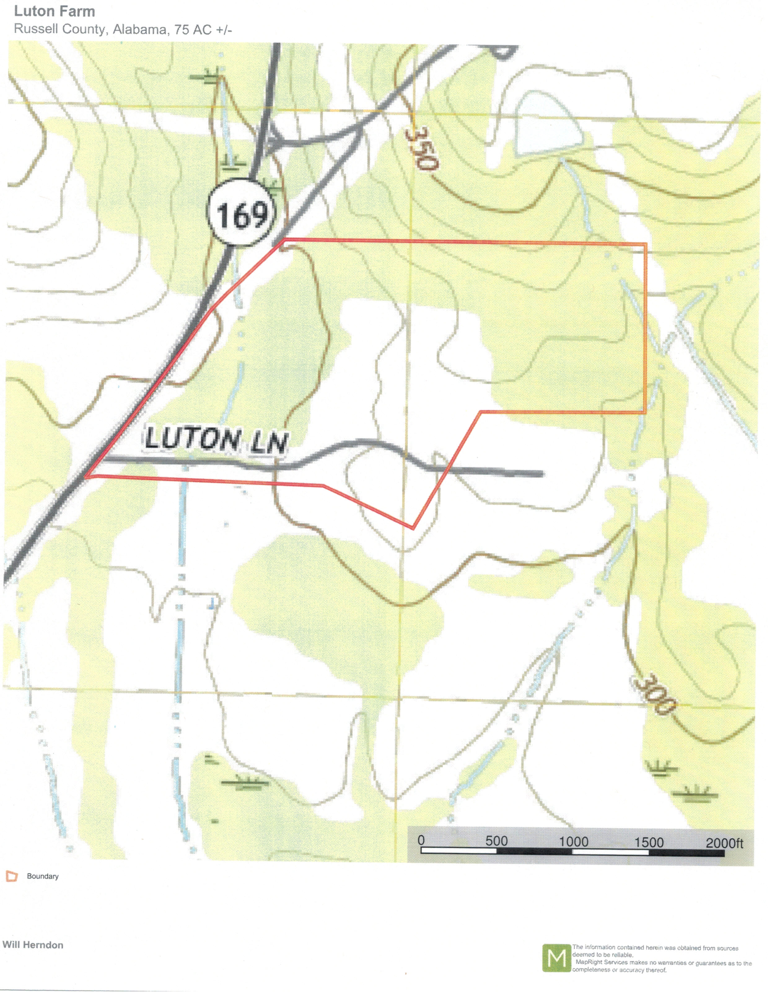 Tutt Land Company is excited to offer for sale the beautiful Luton Farm in Russell County. The Luton Farm is 75 (+-) acres located in Seale, AL within 30 minutes of Columbus, GA and the Auburn/Opelika area. The owners have meticulously cared for this farm for years and it really shows. Situated in a nice, clean area and joined by large landowners this farm features established, fenced pasture with a small pond ideal for horses, cows or other livestock; AL Highway 169 road frontage, areas of mature pine timber and a nice gravel driveway with electric gate leading to the beautiful brick home. The home was built in 1998, is about 5200 SF and has 5 bedrooms, 6 full baths and 2 half baths. It features hardwood floors throughout, large bedrooms and bathrooms, two natural gas fireplaces, top of the line appliances, a swimming pool and a nice landscaped yard. This home is ideal for a large famil...