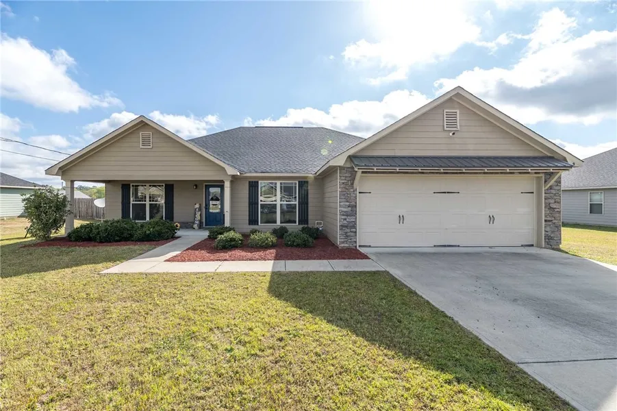 Beautiful one-story home with 4 bedrooms/2 baths featuring an open floor plan. Lovely kitchen with custom cabinets, granite counters, ceramic tile floor, breakfast bar and spacious dining area with room for a coffee bar. Lots of natural light fills this spacious split floor plan home. Plenty of space in the master suite with room for a sitting area or desk, large master bath w/ separate tub/shower & dual vanity; 3 additional bedrooms and an additional bath, spacious laundry room, 2 car garage; huge, wired multi-purpose out-building, fenced backyard, covered back patio, home situated on a level half-acre lot, large front porch, quiet culdesac.