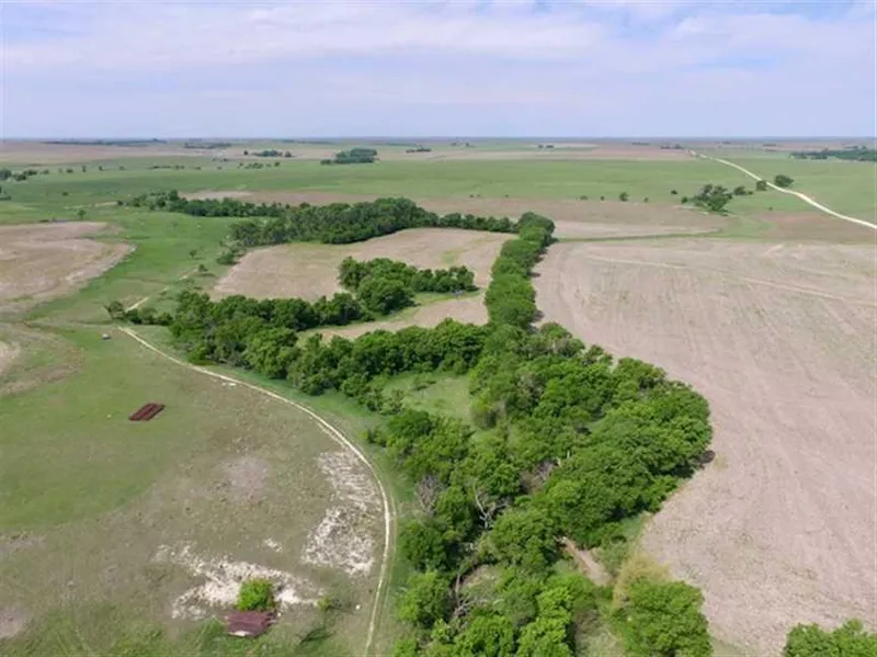 This 150 +/- acres is the perfect combination of tillable, CRP and timber and creates a unique hunting property. This property has all the right pieces, about 70 acres of farm ground, 20 acres of CRP, and about 60 acres of grass and timber. There is a small seasonal creek that winds through with various mature hardwood trees. This low lying creek creates a natural travel corridor for deer and provides numerous roosting trees for the Rio Grande turkeys in the area.