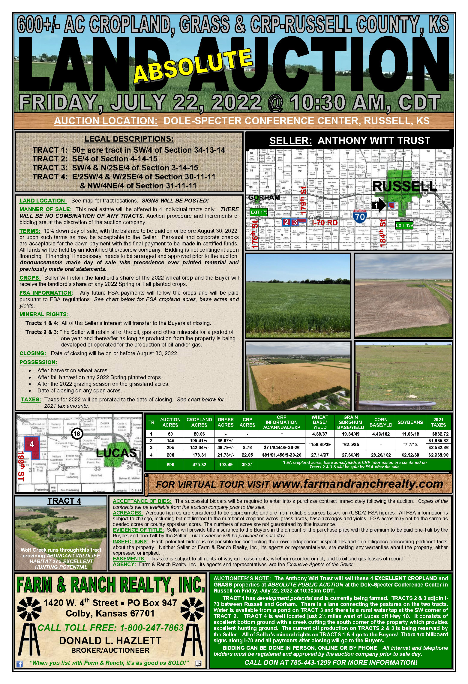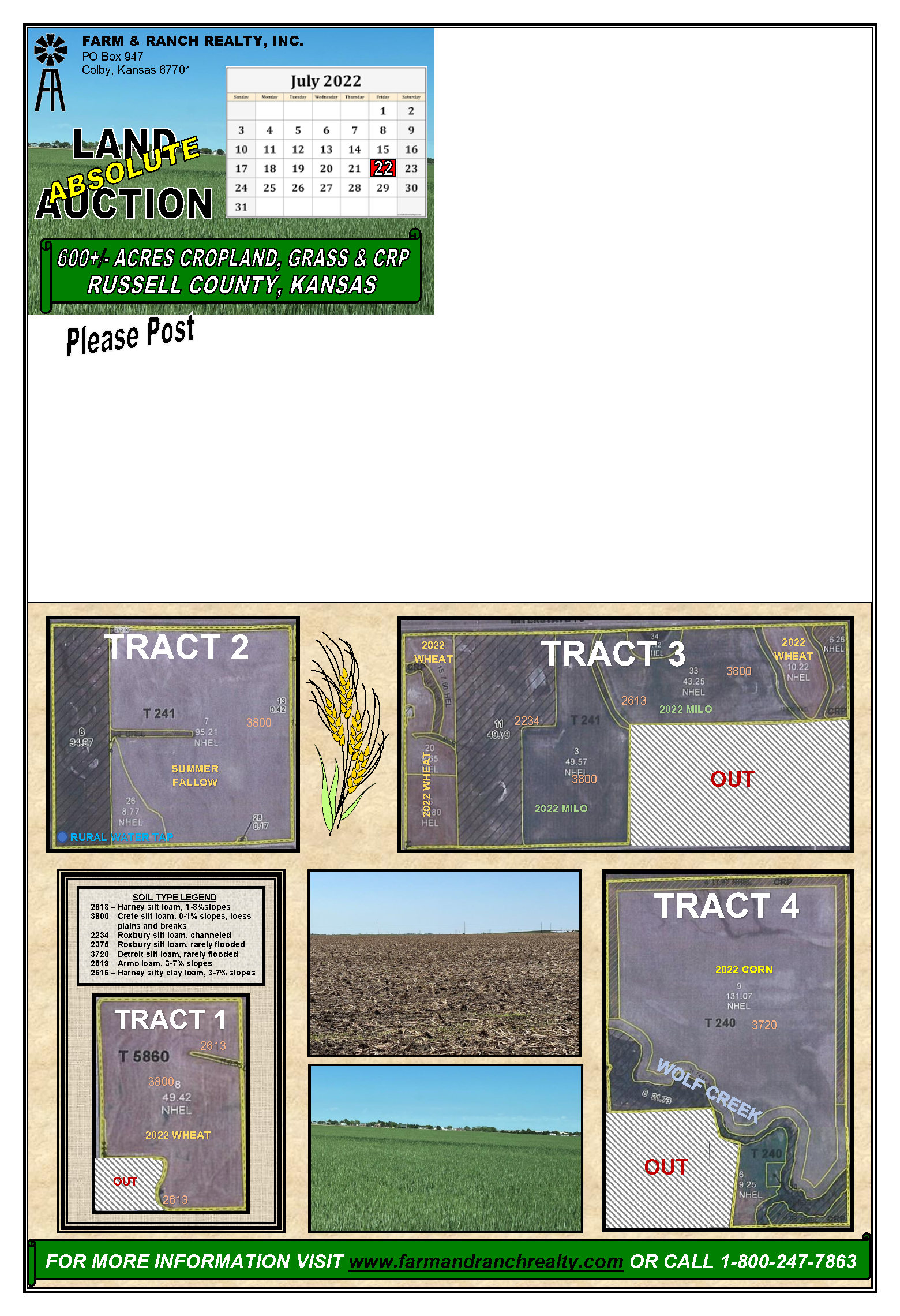 TRACT 1: 50+ acre tract in SW/4 of Section 34-13-14, Russell County, Kansas