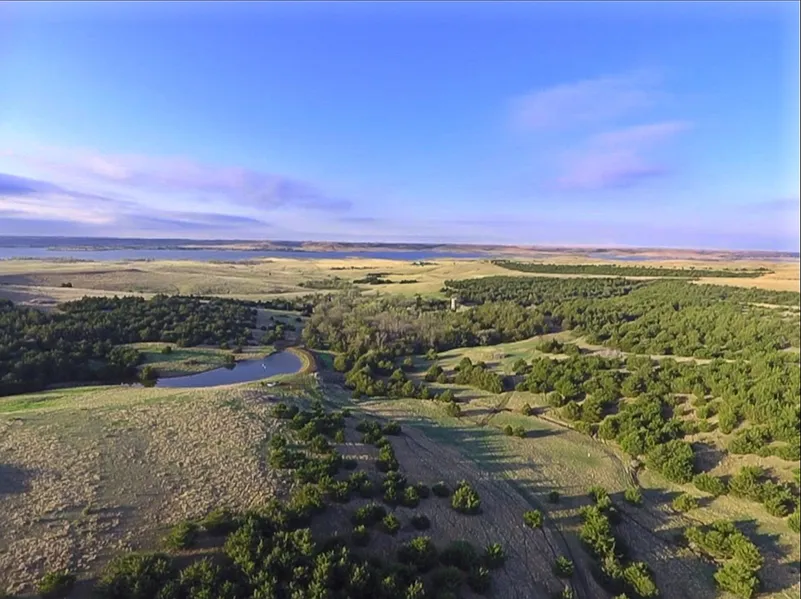 The cabin is a one of a kind experience in its own respect, but barely scratches the surface of the amazing qualities and opportunities provided by the land it sits on. As you enter the property through the private locked entry gate the stunning view of Wilson Lake becomes more and more vivid as you travel along the private drive down the hillside. It almost seems unrealistic to own a property with such an incredible view of the lake below. The cedar-lined hillsides and ponds throughout the valleys below provide incredible scenery during all seasons of the year, but also provide plentiful cover for several whitetail deer to call this property home. This area is well-known for trophy whitetail deer genetics and this property has all the qualities needed to hold some of the largest whitetail deer in the State. A few openings within the timber throughout the valley are perfectly suited for planting wildlife food plots to attract even more deer and turkeys to the property. There are excellent stand setup possibilities throughout the ranch for archery and firearms deer seasons making this an easy property to hunt with low-pressure tactics. There are multiple ponds throughout the ranch providing reliable water sources for wildlife and livestock and would be perfect family fishing holes once stocked with fish. Upland birds are common in the tall grasslands and waterfowl frequent the ponds throughout the year as well. The rolling to rugged layout of this ranch provides the perfect terrain for family hiking trips and many fascinating characteristics to explore along the way.