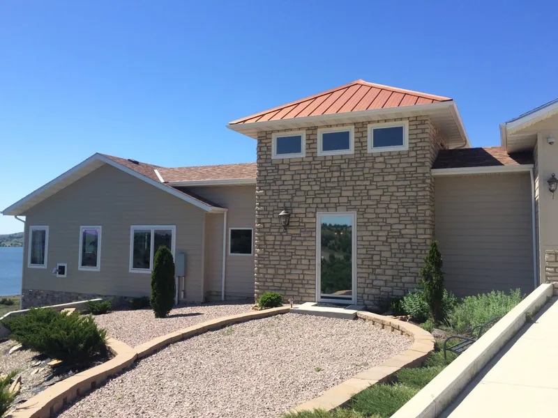 Whether its a beautiful sunrise, an afternoon of rays glistening off the lake, to a peaceful sunset, the red Dakota sandstone hills provide a tranquil presence hard to find. Situated along the shoreline of Wilson Lake with 8 acres of your own private paradise, there is lots of open air and room for activities. Looking back to the west provides a spectacular view of the lake and to the north a view of the dam.