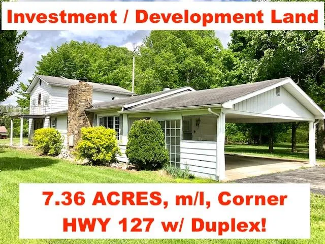 Commercial / Investment / Development Land Fronting Highway 127, Owenstown School Road and Honeysuckle Lane offering 7.36 Acres, m/l, (FROM NEW PRELIMINARY SURVEY) with Former Converted House / Duplex Rental Property and 2 Outbuildings. No Restrictions!