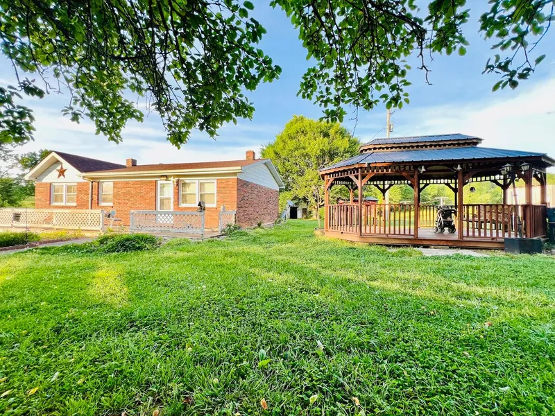 Tract #3: 900 Melson Ridge Road, Jamestown, KY: This tract features a beautiful 15.44 Acres, m/l, having brick house with basement sitting back from roadway with 12ft x 20ft gazebo, 30ft x 31ft metal shop building and additional outbuildings! Main level of house offers 2 bedrooms, large bath, kitchen / dining area, large living room & more! The full basement is semi-finished additional 2 bedrooms, laundry room and large storage areas. Basement has divided rooms, drywall ceilings and walk out entrance. House has double pane windows, central heat & air, flue for wood stove, wrap-around deck, double-pane windows The metal shop building has electric & concrete floor. stream, some woods and blacktop road frontage.
