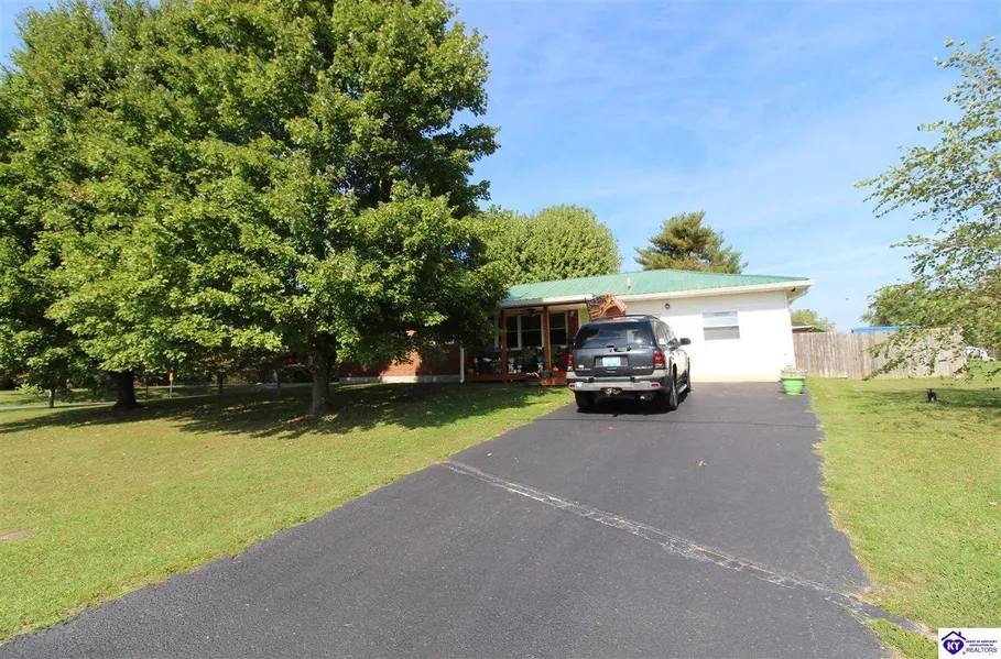 PENDING-ACTIVE UNDER CONTRACT-Sellers accepting Back Up offers. Cute brick ranch on located on corner lot. 4 bedroom home as garage previously enclosed for added space. The main bedroom is located in the converted area along with laundry area and private bath with shower. 3 more bedrooms are on opposite side of the home. Hall bath has tub/shower combo. Main living area has hardwood floors. Both baths have new decorative tile flooring. Eat in kitchen is centrally located for convenience and function. Relax on the covered front porch or in the rear fenced yard. Plenty of parking as side entrance goes to covered carport space and front drive has space for more vehicles. Unfinished basement affords lots of storage. Security system remains. Sellers have done several updates, recently serviced HVAC and are providing a 1 year home warranty for extra peace of mind.