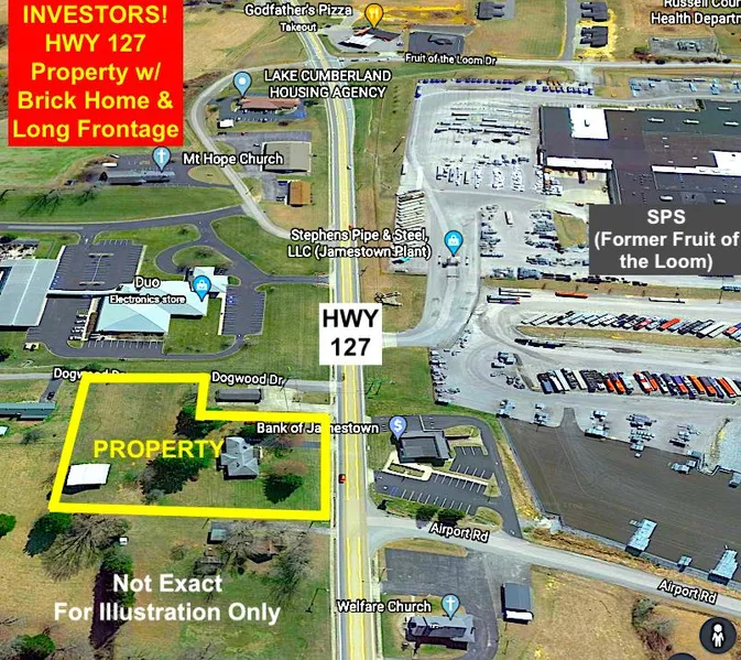 On Hwy 127 in Jamestown, directly across from the Bank of Jamestown Branch and across from the SPS Building (Former Fruit of the Loom). Auction Banners Posted.