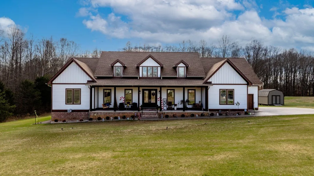 Step into luxury and comfort with this custom-built home, completed less than a year ago and designed with high-end finishes throughout. Situated on approximately 1.2 acres, this ~2,600 sq. ft. residence offers modern elegance, functionality, and space. The open-concept floor plan features cathedral ceilings in both the living room and primary suite, creating a spacious and inviting atmosphere. The kitchen is equipped with quartz countertops, mosaic cabinets, a coffee bar, and a butler's pantry, plus a full appliance package including a range, two dishwashers, microwave, refrigerator, washer, and dryer. Additional upgrades include remote-controlled blinds, recessed lighting, California closets, under- and over-cabinet lighting, and ceiling fans throughout. The home features two water heaters, an osmosis water system, central heat and air, and a security system with cameras (monitoring not included). The primary suite offers a spa-inspired bathroom with quartz countertops and dual vanities. Secondary bedrooms and bathrooms are well-appointed with maple countertops, ample storage, and two hall linen closets. Outdoor amenities include covered front and back porches with swings, epoxy-coated floors, a large storage building, and a concrete driveway with stamped sidewalks. The attached garage features epoxy flooring, custom shelving, and a dedicated storage room, along with an extra-tall crawl space for additional storage. Located just minutes from Lake Cumberland, this property combines modern finishes, thoughtful design, and a peaceful setting-all move-in ready.