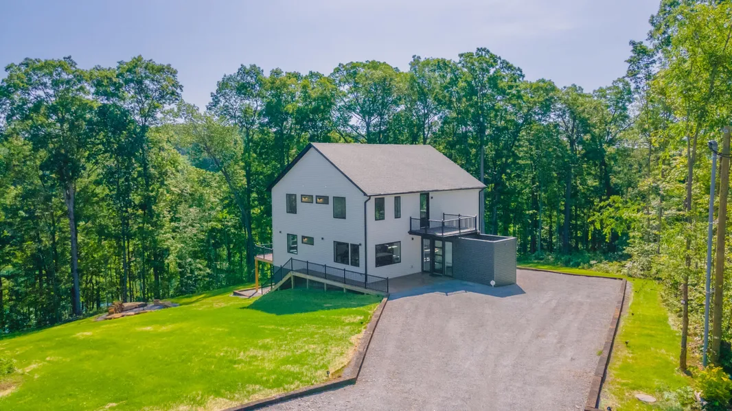 This contemporary home on Lake Cumberland offers modern comfort with large windows that bring in natural light and highlight the surrounding views. The open-concept layout features a striking triple-height main living area that makes the space feel bright and spacious. Situated on nearly an acre across two combined lots, the property sits at the end of a quiet cul-de-sac and is only 10 minutes from multiple boat ramps and Wolf Creek Marina. Inside, you'll find custom two-tone white oak cabinetry, quartz countertops, and exposed white oak beams that add quality and character. The home sleeps 15+ guests comfortably and includes a full range of amenities for everyday living or vacation rentals. With four years of strong Airbnb performance and Superhost status, this property offers excellent income potential in addition to being a high-quality lake retreat. Owner/Agent