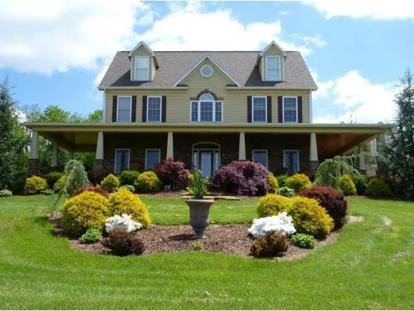 Country estate with amazing 3000+ SF home on over 49 acres with breathtaking panoramic mountain views enjoyed from 10'' wide wrap around porch! Peaceful location situated well off the main road provides privacy in an idyllic and serene setting. Picturesque waterfall, cave & koi pond on property. Estate also includes large horse barn and separate outbuilding. Top of the line finishes.