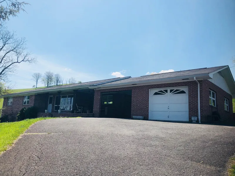 Brick ranch home that has recently been updated to include a kitchen remodel with laminate hardwood floors, counter tops, tile back splash, freshly painted cabinets, stainless steel appliances, bar area and the cabinet storage is very spacious. The kitchen is very open with space for a table and is open to a room that could be utilized for a family room/den or a formal dining room depending on your needs. The room features a brick wood burning fireplace and sliding glass doors that lead out to the concrete porch. Home features 3 bedrooms and 2 full baths that were also recently remodeled. Basement features a large 418 finished square foot room with luxury vinyl plank flooring, 2 closets and opens directly to the outside. Covered front porch, carport and garage. The home sits on a 16 acre mini farm with rolling and flat land. The mini farm contains barns, sheds, water troughs,cattle pen with head gate and is 100% fenced!! The views are breathtaking and the farm is very well maintained.