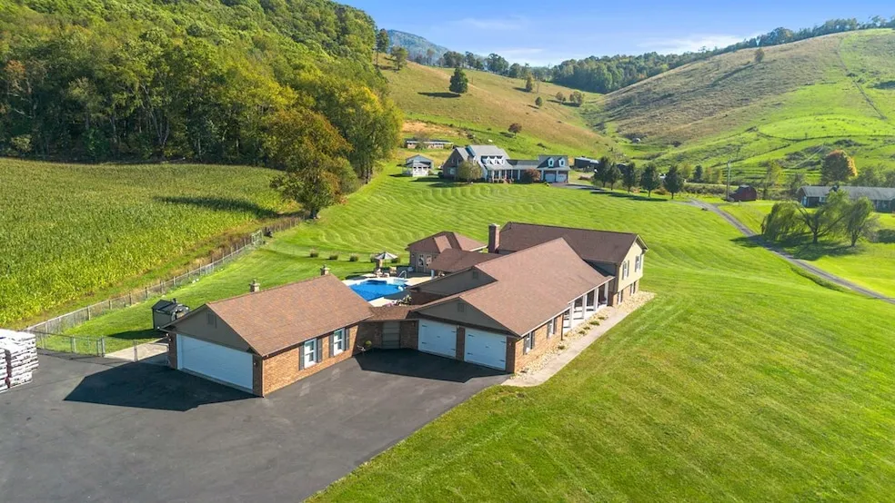 Updated 3 bedroom, 2.5 bathroom split foyer home, sitting on cleared 2+/- acres of land with gorgeous views in Rosedale, VA! Over 2900 square feet of finished living space, additional living space can be added in the lower level or in the attached garage that could be easily made into a MIL quarter. The all of the home's focal rooms, along with the half bath & laundry are on the main level, the bedrooms and 2 full baths are on the second level, & a finished den/office space in the lower level. Outside, find plenty of parking spaces on the asphalt driveway that leads to the attached 2 car garage offering an EV charging station & an additional 25'x30' detached 3 car garage. In the rear of the home, a partially fenced yard wraps around an outdoor oasis complete with an in-ground pool, equipped with its own pool house & an outdoor grilling station. Call today for your private tour!