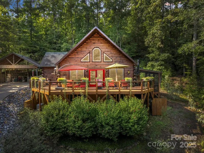 Welcome! A unique & custom-built log-style home in the sought-after Riverbend community of Lake Lure! Enjoy mornings on the covered porch or soaking up the sun, while listening to the river just across the street! The natural beauty and sounds of water nearby with this elevated homesite! This setting truly captures the essence of mountain living: fresh air, wildlife, and a deep sense of relaxation! One-owner home (*never rented out, but can be) has been meticulously cared for and is ready to serve as your full-time retreat, vacation getaway, or even a rental investment if desired! From the moment you arrive, you’ll appreciate the inviting curb appeal and serene mountain setting, with the natural light! This property is all about comfort, peace of mind, & the best of mountain living! A thoughtfully designed 2-bedroom+flex/office in basement, 2.5-bath layout that feels both spacious & warm...
