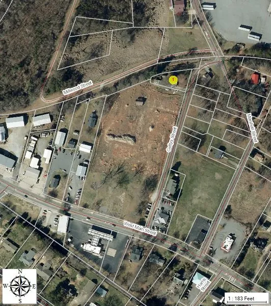 4.83 vacant grassed acres, commercial zoned, inside city of Forest City, North Carolina. UPtown Forest City, 327 feet frontage, 660 feet depth on Gettys Street, 323 feet across rear property line adjoining thermal belt railroad walking trail, 529 feet west property line - level with gentle slope to rear, high traffic, high visibility.