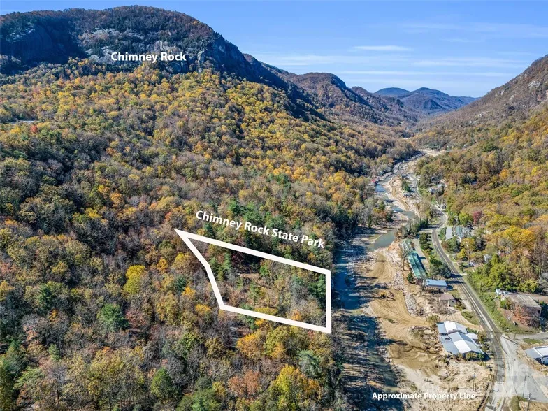 This Prime location offers easy access to Chimney Rock Village, Lake Lure Beach & the Marina. Get in on the ground floor of the renaissance happening as the area recovers from Hurricane Helene with new businesses opening and plans for new multipurpose trails and attractions. You can be confident knowing that your property incurred no damage or flooding from that epic storm. Perched high above over 200 feet of Rocky Broad River frontage with over an acre of land, this buildable lot has amazing mountain views, a hiking trail down to the river and is bordered directly by Chimney Rock State Park for ultimate privacy. The lot is semi cleared with a driveway already rough graded, the water meter (Town of Lake Lure) is in place along with a new 3 bedroom septic tank. Geotechnical surveys and house renderings are available. This area is springing back to life and this location is truly one of a kind.