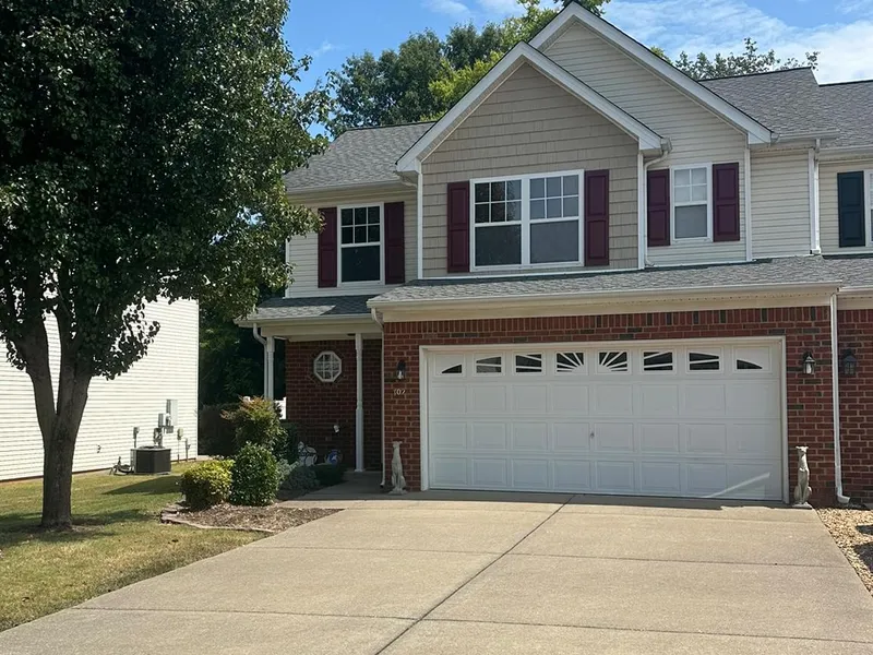 The primary suite offers a private retreat with oversized tub shower combo, a walk-in closet, and en-suite bath. Additional bedrooms include generous closet space for plenty of storage. The hall shared bath features double vanities and a tub/shower combination. Spacious attached two car garage with private concrete driveway offering ample parking at your door. Step outside to enjoy a private patio with green space, perfect for relaxing or entertaining.