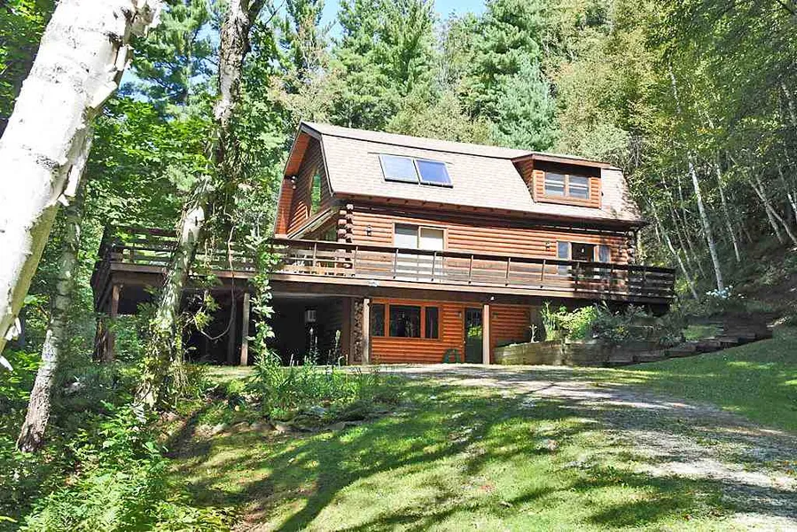 This could be your year round dream home or a special second home. Rich Vermont greenery surrounds this one owner custom built log home, assuring plenty of privacy and tranquility. This 1989 constructed home offers three bedrooms and one and one half baths. The top floor is your private en suite with open balcony area that looks down into the fabulous great room. The central part of the home offers a very spacious great room w. softwood flooring, wood stove for all of those chilly nights, cathedral ceiling, plenty of window area which allows the natural light to flow in, and glass doors that lead to your expansive decking where you will feel a natural connection to Vermont's landscape. On this floor you will also have a delightful kitchen, formal dining room and half bath that are graced with warm wood tones. The lower level walks out to the outside and has two additional bedrooms, spaci...